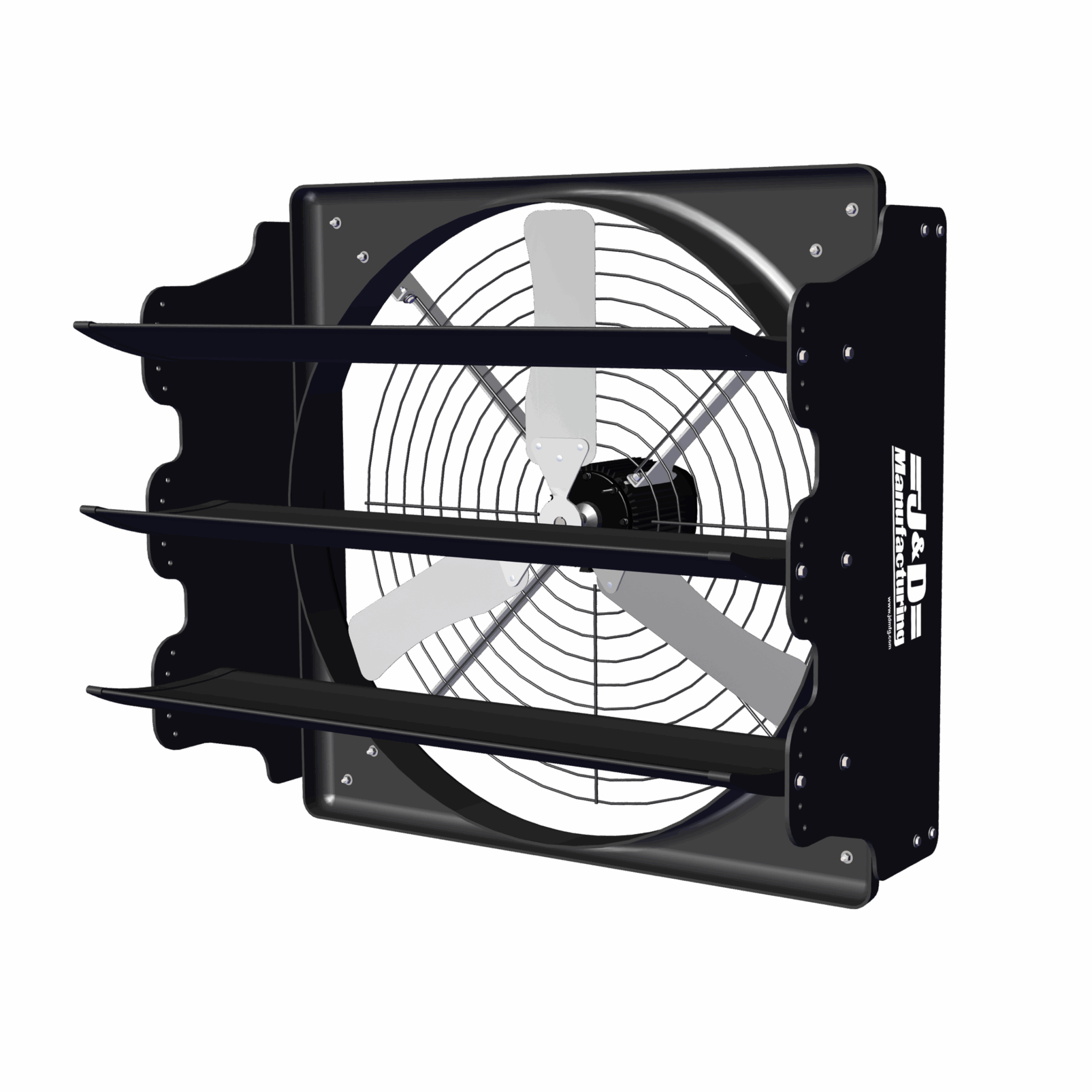• Minimal assembly—fan arrives pre-assembled, just add panels and louvers